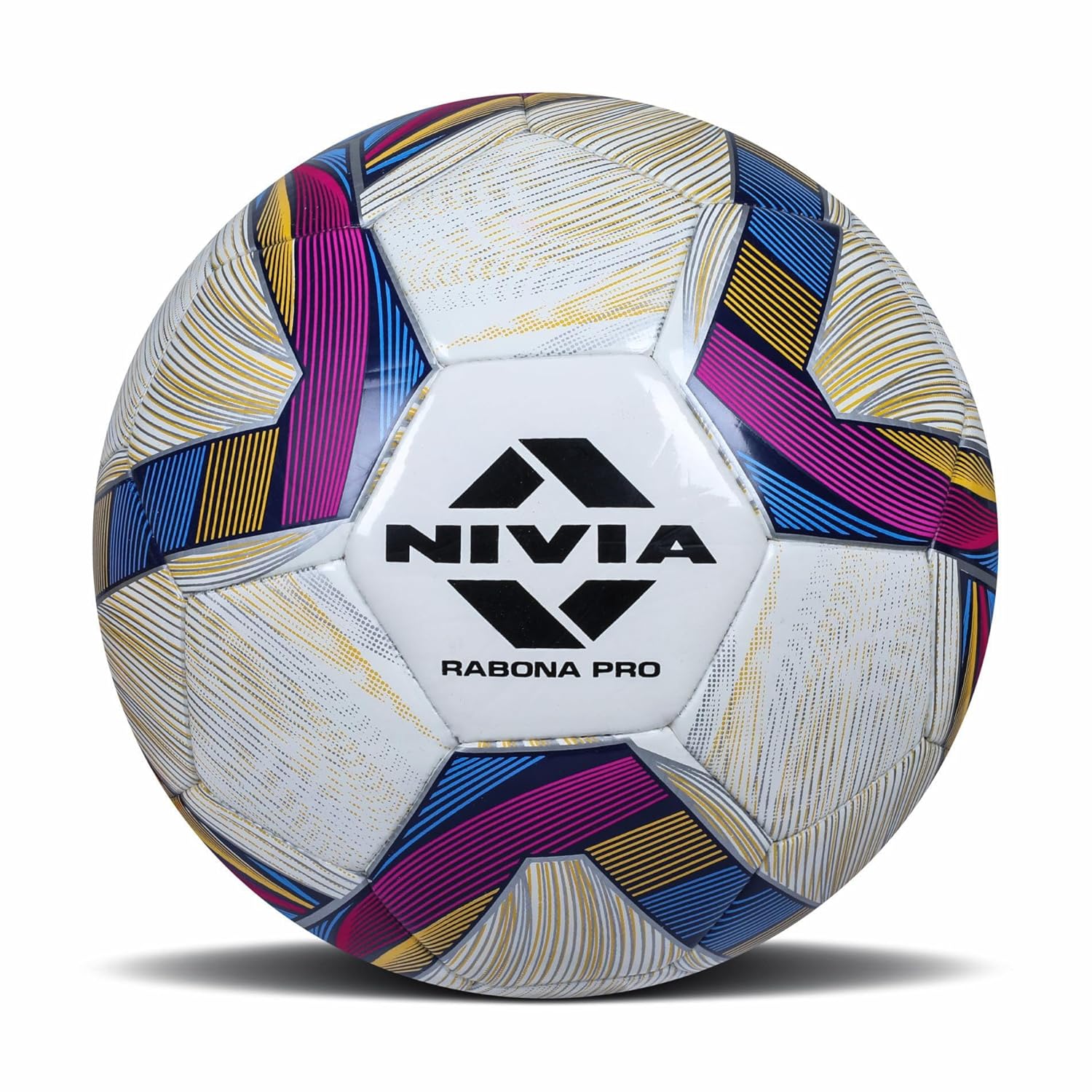 Nivia Rabona Pro Football, 32 Panel, Glossy TPU Stitched, Suitable for Soft & Dry Ground, Hard Ground with Grass & Artificial Turf, International Match Ball Size- 5 (Multicolor)